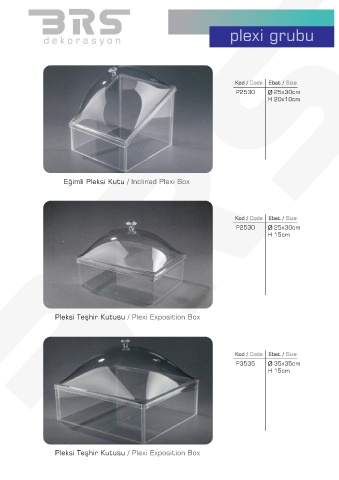 P2530 25x30cm H 20x10cm Eğimli Pleksi Kutu / Inclined Plexi Box P2530 25x30cm H 15cm Pleksi Teşhir Kutusu / Plexi Exposition Box P3535 35x35cm H 15cm Pleksi Teşhir Kutusu / Plexi Exposition Box